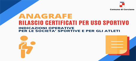 - Istanza online mediante Sportello telematico del Comune di Corciano specificando “uso sportivo” per l’esenzione del bollo (il certificato sarà predisposto dall’Ufficio Anagrafe ed inviato successivamente) al link https://sportellotelematico.comune.corciano.pg.it/procedure%3As_italia%3Acertificati?source=504