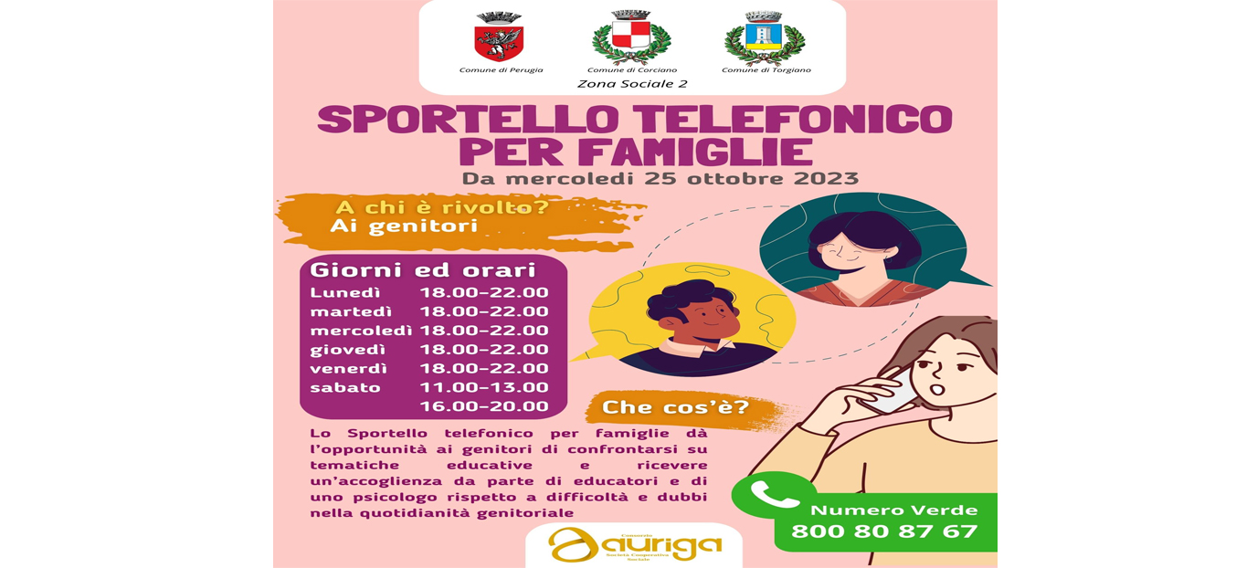 Lo Sportello telefonico per famiglie dà l’opportunità ai genitori di confrontarsi su tematiche educative e ricevere un’accoglienza da parte di educatori e di uno psicologo rispetto a difficoltà e dubbi nella quotidianità genitoriale