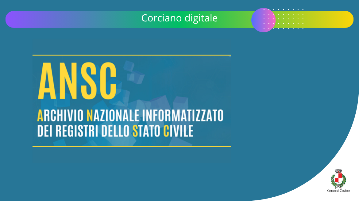 Con il subentro nell'Archivio Nazionale informatizzato dei registri dello Stato Civile (ANSC) ogni comune accede ad una piattaforma centralizzata per le attività di registrazione, archiviazione e conservazione, che consentirà altresì il rilascio, nel breve periodo, dei certificati di stato civile digitali direttamente dal proprio personal computer di ogni cittadino, che si autentica con SPID, CIE o CNS, come già accade per quelli dell’anagrafe sulla ANPR (Anagrafe Nazionale della Popolazione Residente)