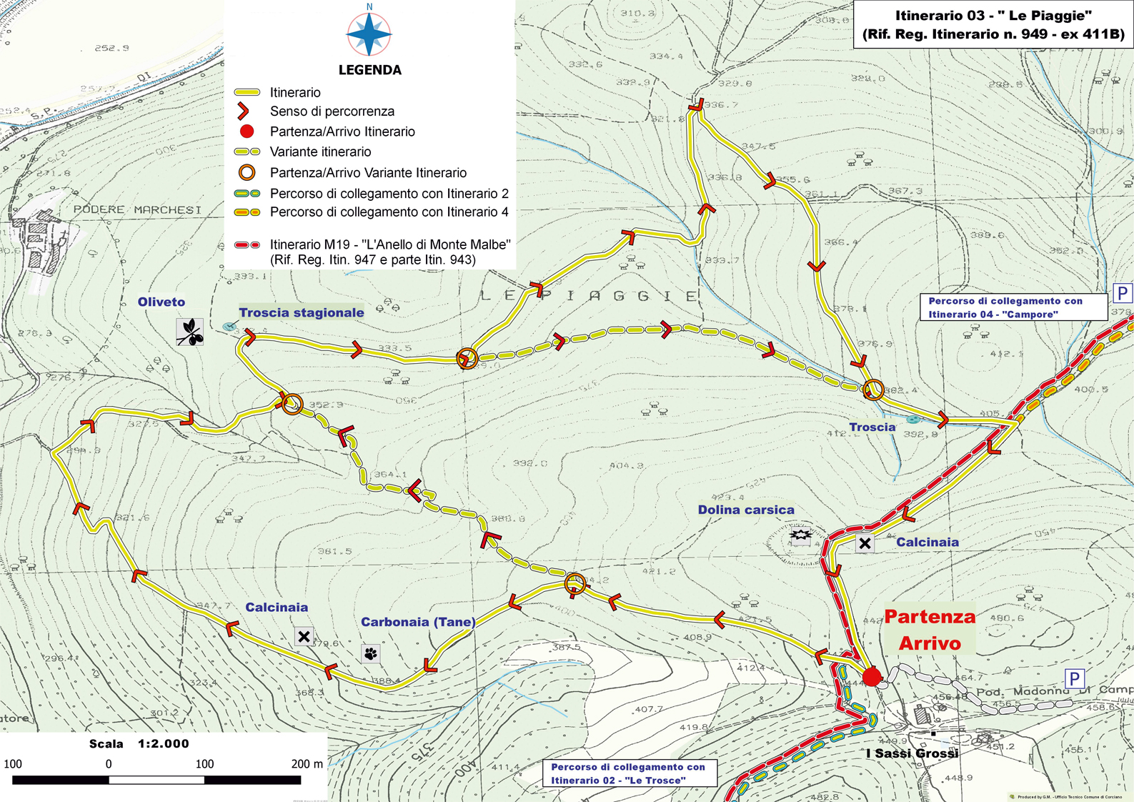 La mappa dell'itinerario è anche disponibile sulla piattaforma Wikiloc al seguente link : Itinerario 3 - Le Piagge - Scorciatoia 2