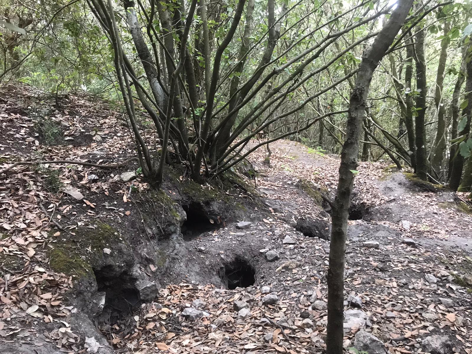 Intrapreso il sentiero, si prosegue svoltando a sinistra, per scendere lungo una mulattiera molto scoscesa e pietrosa in direzione del “Podere Marchesi”. Lungo tale tratto, sulla destra, vi è una parte di bosco, sede di un’antica carbonaia, caratterizzata oggi, grazie al terreno reso morbido e friabile dalla cenere ancora visibile, dalla presenza di tantissime tane, molto probabilmente scavate dapprima da una comunità di tassi e oggi abitate da istrici: una vera e propria città faunistica, ricca di passaggi e gallerie, che si raggiunge attraverso uno stretto passaggio tra la fitta vegetazione creato dagli animali stessi. Nelle sue immediate vicinanze, come spesso avveniva in passato, è possibile ammirare i resti di un’antica calcinaia.