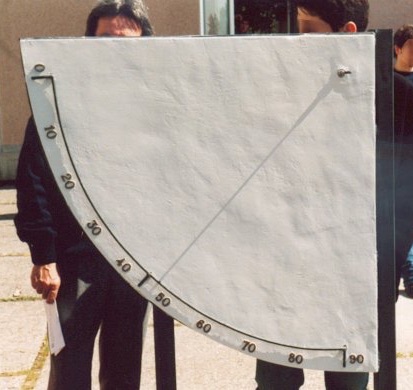 Costruire un Plinto Tolemaico è abbastanza semplice, è sufficiente avere un parallelepipedo, anche di legno, il cui spessore non ha importanza, sul quale viene montato perpendicolarmente alle due facce lo Gnomone, e disegnati gli archi il cui centro è lo Gnomone stesso, l’ombra del quale, a mezzogiorno, cade sulla gradazione (da 0° orizzontale a 90° verticale) e il gioco è fatto!