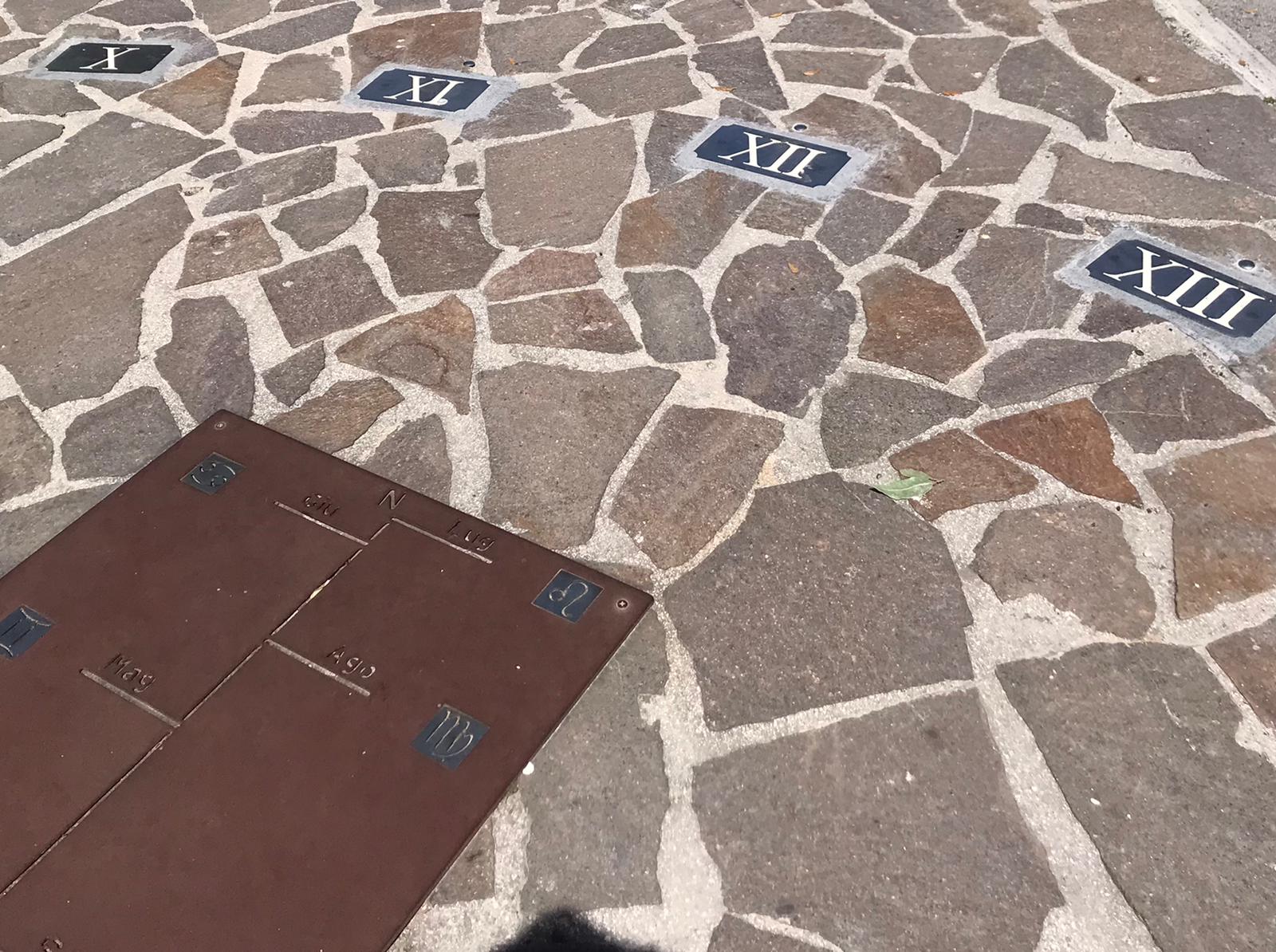 Il funzionamento però è semplice: è sufficiente collocarsi con i piedi sul mese in cui ci si trova (il tallone deve segnare approssimativamente il giorno del mese) e osservare l’ora segnata dalla nostra ombra.