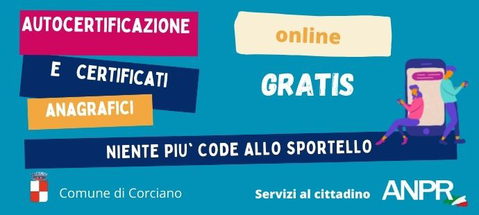 Grazie al subentro della quasi totalità dei comuni italiani in ANPR, Anagrafe Nazionale della Popolazione Residente (il comune di Corciano già da Maggio 2019) ed alle recenti normative sulla semplificazione, dal 15 Novembre 2021 sarà possibile scaricare i certificati anagrafici online in maniera autonoma e gratuita, per proprio conto o per un componente della propria famiglia, senza bisogno di recarsi allo sportello.
