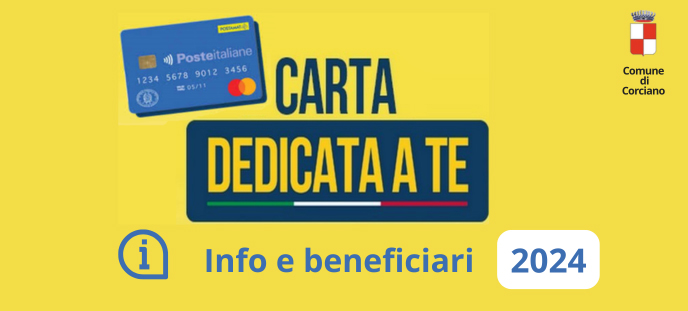 È stato pubblicato – con Determinazione Dirigenziale n. 849 del 09/09/2024 l’elenco dei beneficiari della carta “Dedicata a te” 2024 residenti nel Comune di Corciano.