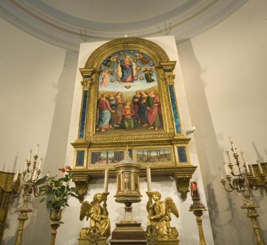 El Retablo de Corciano es una pintura al óleo sobre tabla realizada por Pietro Vannucci llamado “il Perugino”. Cristoforo Ciacci y Luca di Matteo Baroni comisionaron la obra para la iglesia de Santa María en Corciano. La pintura se realizó entre el 1512 y 1513, en pleno Renacimiento; se divide en dos partes: la tabla principal y la grada. La primera representa, en su parte superior, la Asunción de la Virgen rodeada por ángeles, serafines y querubines; en la parte inferior, en una perspectiva de colinas, están pintados los apóstoles que rezan mientras orientan su mirada hacia la Virgen. En la grada, se representan la Anunciación y la Adoración del Niño, sumergidos en un paisaje arquitectónico y natural. El retablo se remonta al período de producción tardía del Perugino y evidencia la influencia de la pintura leonardesca. Los colores tornasolados, el empleo del oro, el cuidado de los detalles y la elegancia de la figura confieren gran valor a la obra.